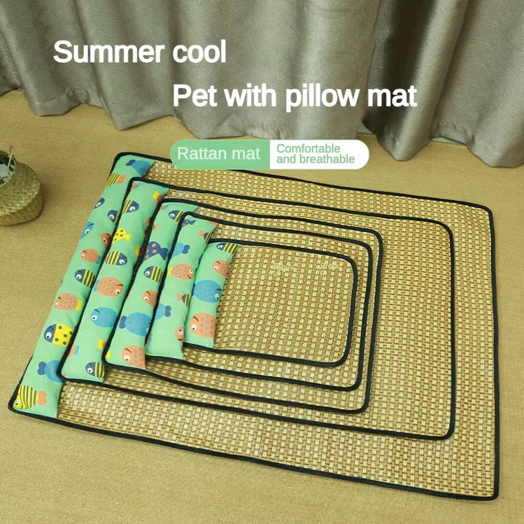 【Summer Cooling Pet Mat - Breathable Rattan Woven Bed for Dogs & Cats】