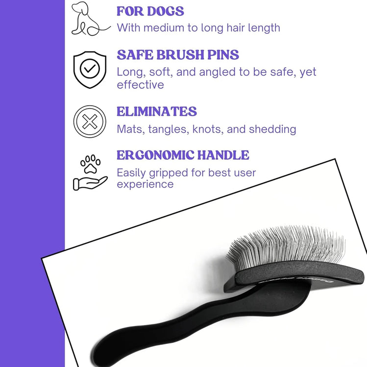 ESPECIALLY DESIGNED FOR DOODLES - Whether you have a Poodle, Golden doodle, Labradoodle, or any doodle mix this brush was made for you. Our long, soft, and angled pins allow you to brush with ease, no matter how long or dense your dog's hair is. Although our brush was designed for doodles, it is still compatible and effective for all other dog breeds.