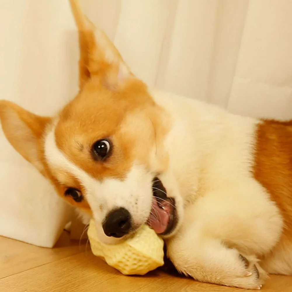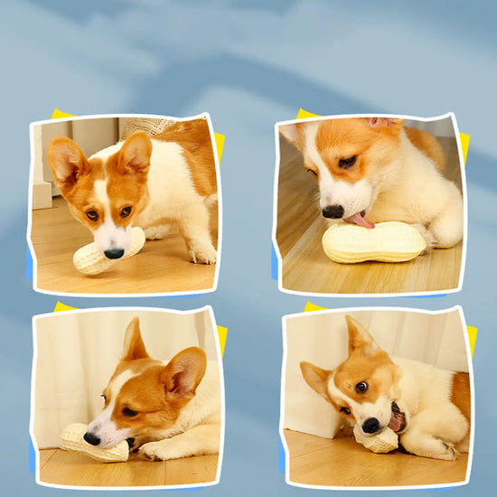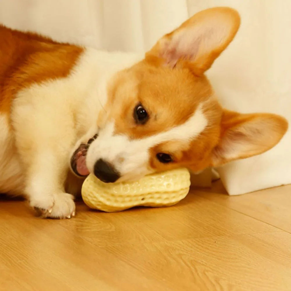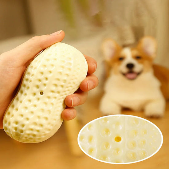 Dog Toy, Durable Chew Squeaky Ball for Teeth Grinding, Peanut - Shaped Interactive Play Toy for Dogs